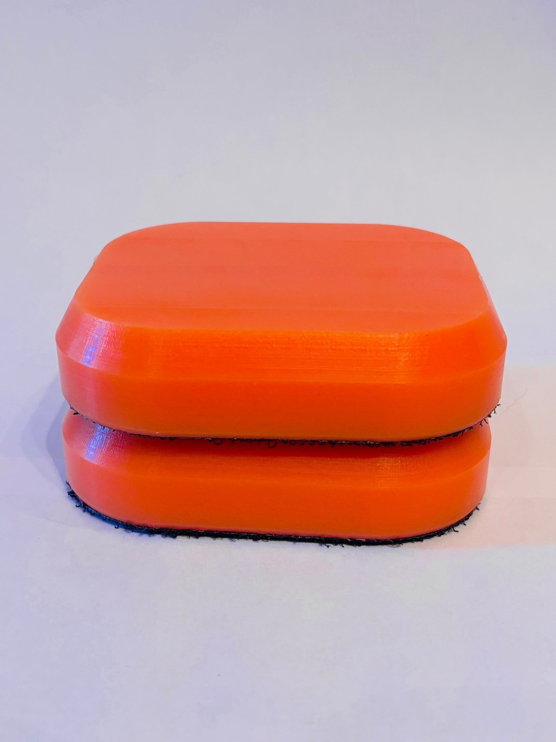 Measuring in at 3.5” x 3” x .75” with rounded corners and chamfered edge. These smooth and long lasting pucks come backed with heavy duty Velcro ready to stick directly to your gloves. The .75” thickness is great for use all by themselves, or paired with a set of risers. Standards are the best shape for those that want the most surface area and palm coverage.